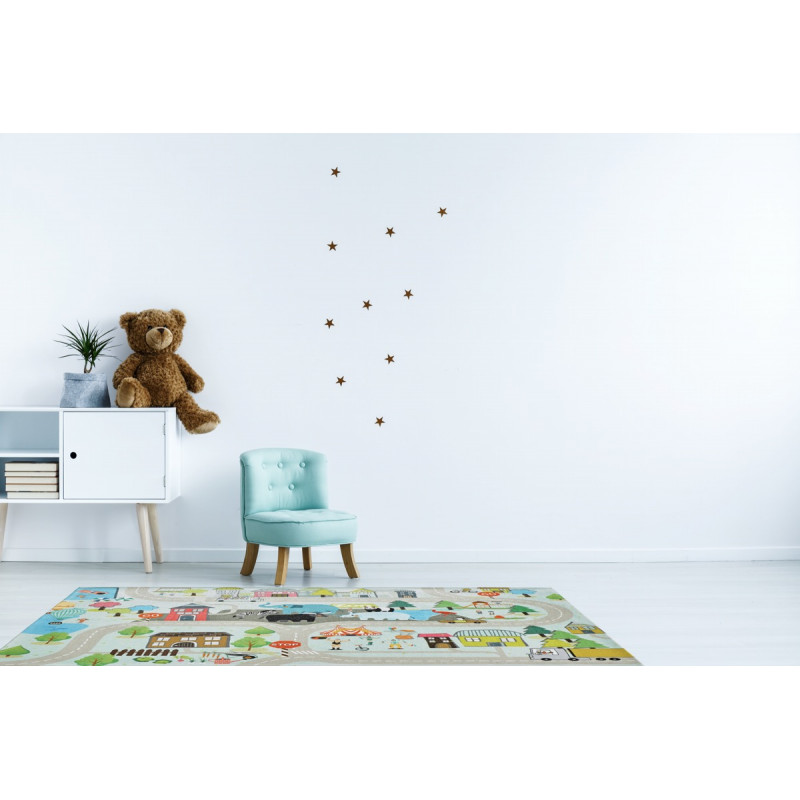 Fantastický koberec do detskej izby, ktorý poteší chlapcov aj dievčatá. Koberec nemá klasický vlas, ale je vyrobený zo 100% polyesteru utkaného do nízkych, pevne utiahnutých slučiek, na ktorej je natlačený vzor. Vďaka tomu sa koberec ľahko čistí. Polyester je navyše jemný materiál, preto ani slučkový koberec nie je tvrdý. Skrátka ideálny koberec na detské...