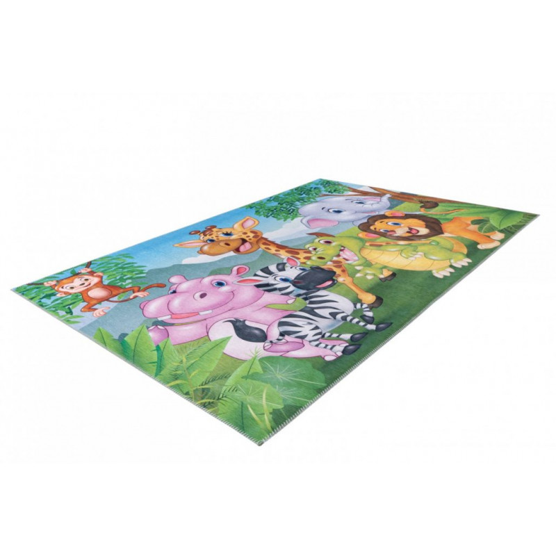 Krásne sýto farebný detský kusový koberec Torino kids 239 s motívom zvieratiek v džungli je skvelým spoločníkom ako pre dievčatá, tak aj pre chlapcov. Jedná sa o koberec s plochým vlasom, takže sa ľahko čistí, čo rodičia iste poteší. Vyrába sa zo 100% polyesterových vlákien, je antistatický a jednoducho lemovaný na všetkých stranách.