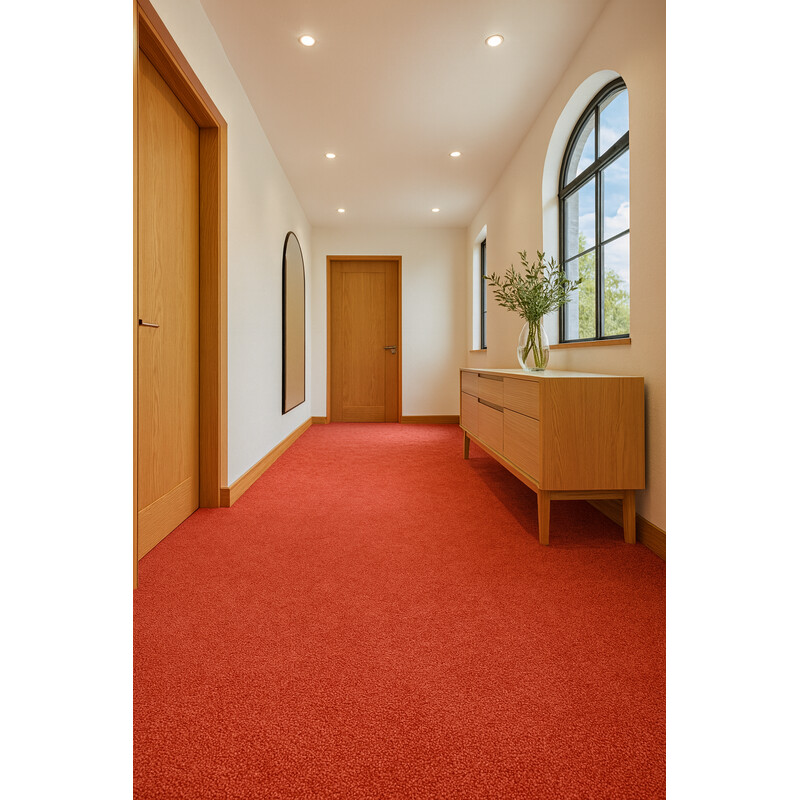 Krásny červený metrážny koberec s jemným melírovaním z kolekcie Mammut. Koberec môžete použiť ako do bytového, tak do komečního priestoru s vysokou záťažou. Možno ho použiť do interiéru s podlahovým vykurovaním či na schodisko. Koberec disponuje antistatickú a protišmykovou úpravou. Navyše tlmí kročajový aj akustický hluk. Skvelá voľba do každého interiéru.
