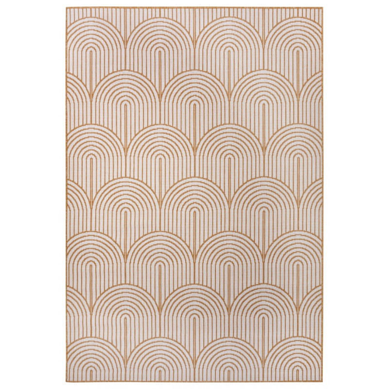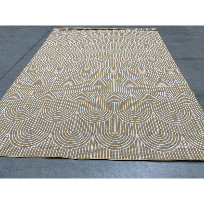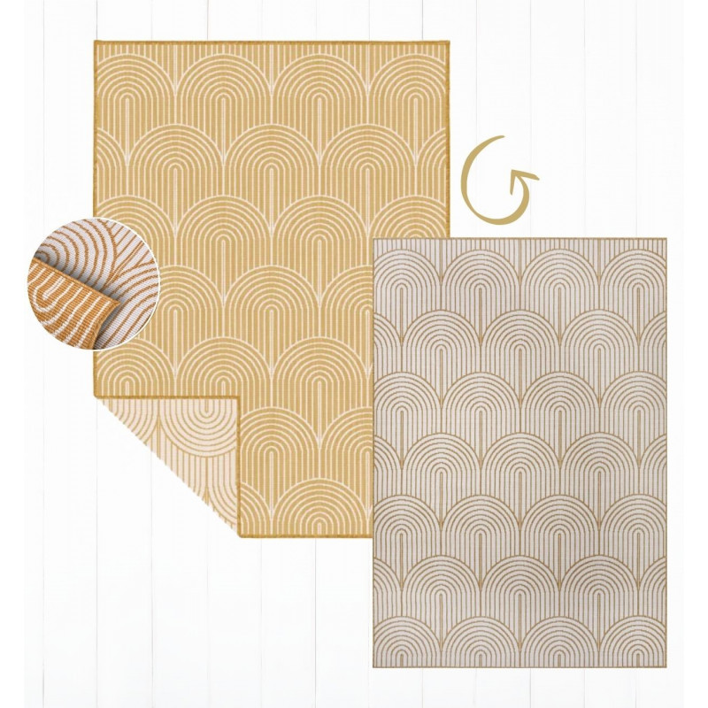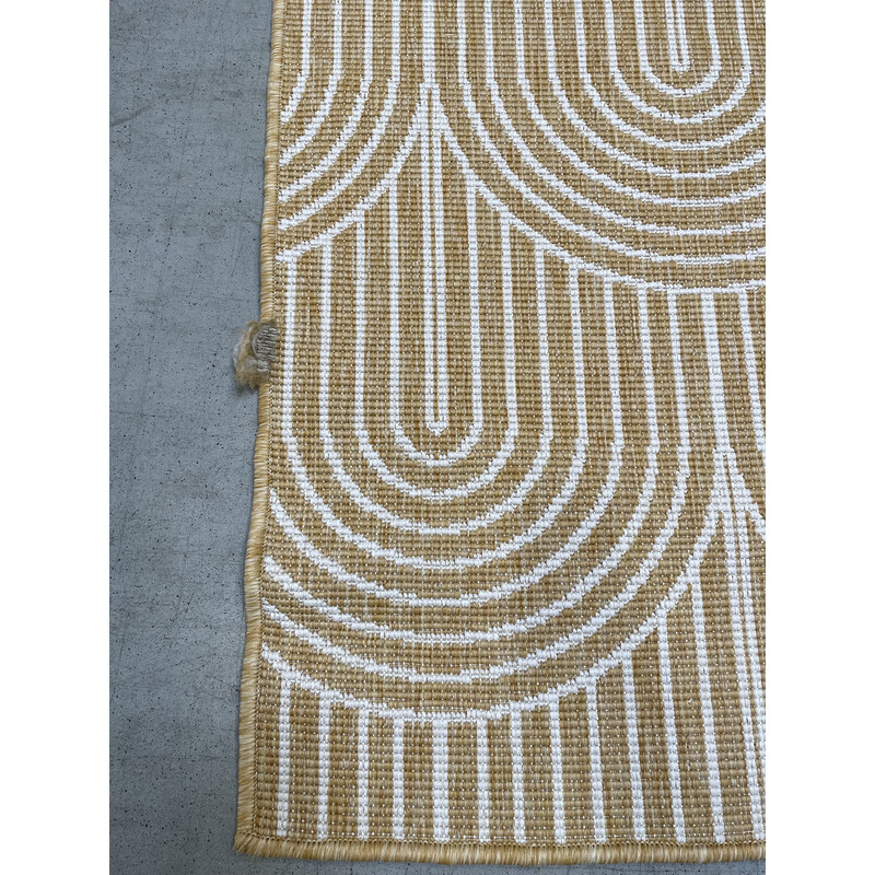 Poškodenie: chyba obšitiaVonkajší koberec so zaujímavým motívom kombinuje bielu a žltú bravu. Rozžiari nielen obývaciu izbu či chodbu, ale aj terasu alebo balkón. Vďaka vysokej odolnosti a jednoduchej údržbe totiž poslúži ako doma, tak v exteriéri. Namiesto klasického vlasu má veľmi krátke slučky z polypropylénového vlákna.