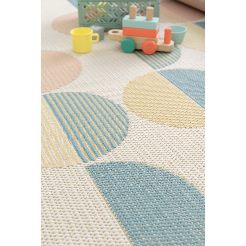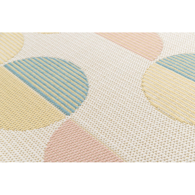 Poškodenie - vytrhnutý vlas Koberec Star s geometrickým vzorom kruhov a polkruhov v jemných pastelových farbách prináša do každého priestoru modernú eleganciu a originalitu. Tento dizajn dodá interiéru svieži a vzdušný nádych, zatiaľ čo vďaka svojej jednoduchosti a harmonickému farebnému ladeniu sa ľahko začlení do rôznych štýlov. Koberec nemá klasický...