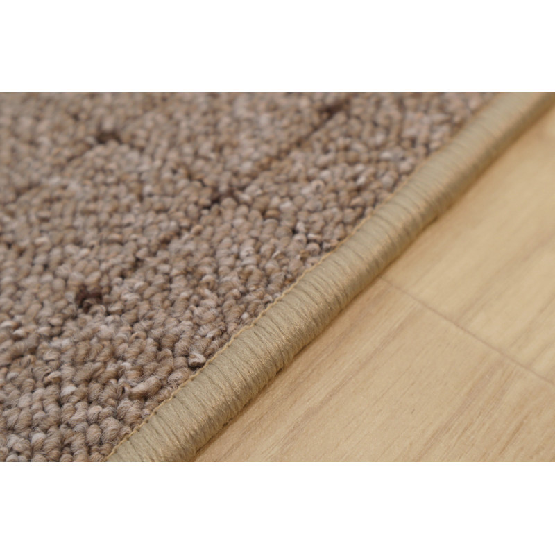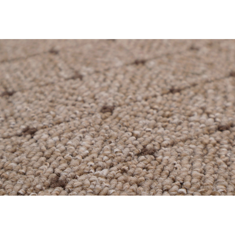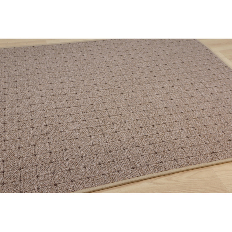 Béžovo-hnedý koberec s obrysmi kosoštvorcov sa vďaka svojej neutrálnej farbe hodí do každého interiéru. Má stredne vysoký strihaný vlas, a preto je komfortný a tiež jednoduchý na údržbu. Vlákna sú z polypropylénu BCF, čo je odolný materiál s nízkou obstarávacou cenou. Obšitie po celom obvode zaisťuje, že sa mu nestrapkajú okraje.