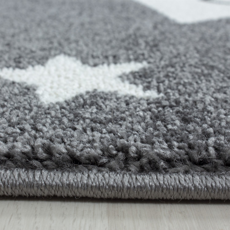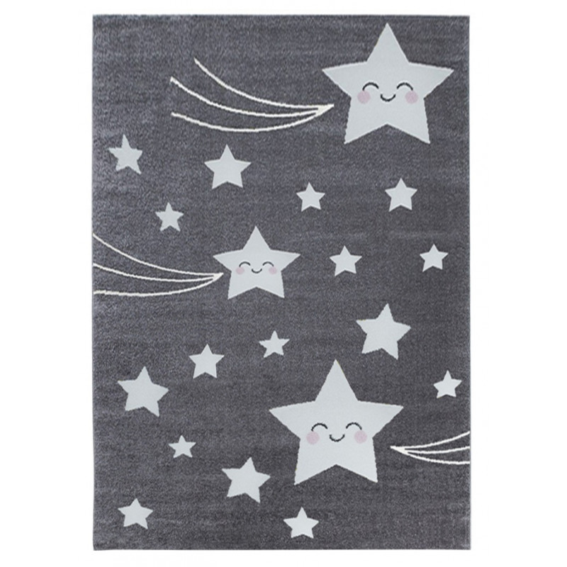Detský kusový koberec v praktickom šedom odtieni s jednoduchým, ale pekným hviezdnym motívom, ktorý sa hodí do chlapčenských i dievčenských detských izieb. Medzi prednosti tohto polypropylénového koberca patrí jednoduchšia údržba (vďaka kratšiemu vlasu), vyššiu pevnosť a antistatická úprava. Koberec je navyše obšitý na dlhších stranách.