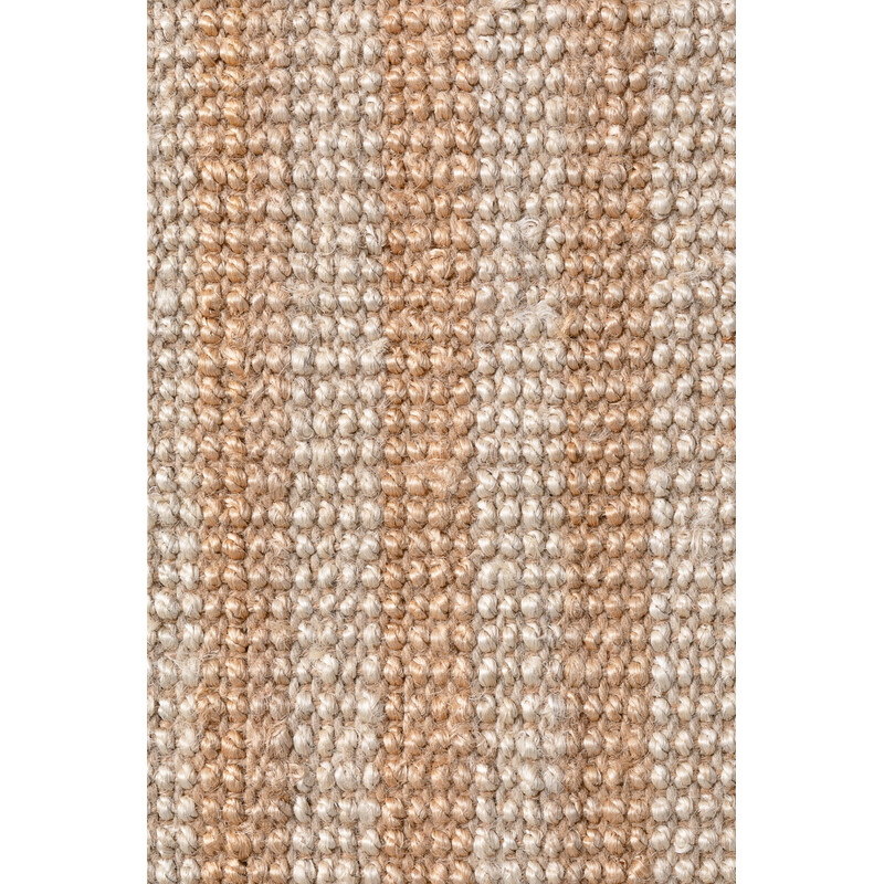 Na prvý pohľad vyzerá ako nenápadný béžový koberec. Pri detailnom pohľade však zistíte, že sa jedná o pozoruhodný kúsok, ktorého základom sú slučky z juty. Tie sú doplnené farebnými tenkými vrkôčikmi z juty a na rubovej strane je vrstva z bavlny. Tento podarený koberec sa najlepšie hodí do spálne alebo obývacej izby, ale odolá aj vyššej záťaži, napríklad...