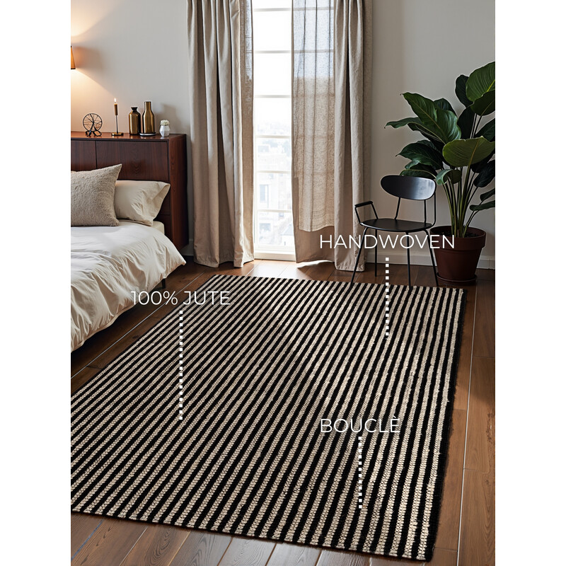 Čiernobiela klasika, ktorá sa na nič nehrá, a napriek tomu má jasné slovo. Pravidelné pruhy dodávajú kobercu rytmus a poriadok, zatiaľ čo ručne tkaná štruktúra z prírodnej juty mu prepožičiava poctivý, ľahko surový charakter. Slučkové prevedenie bez vlasu pôsobí pevne a pokojne, takže krásne vyváža moderný aj minimalistický interiér. Koberec si rozumie s...