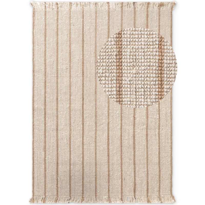 Ručne tkaný koberec v príjemnom béžovom odtieni s jemným melírovaním vnesie do vášho interiéru prirodzenú eleganciu a hrejivú atmosféru. Spojenie juty, vlny a bavlny zaisťuje nielen odolnosť, ale aj jedinečný textilný charakter. Vďaka nízkemu vlasu typu bouclé je koberec ľahko udržiavateľný a hodí sa do rôznych miestností, kde vytvorí útulné a...