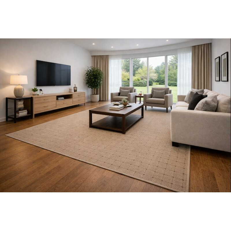 Kusový koberec v elegantnej béžovej farbe je skvelou voľbou pre každý interiér. Materiál tvorí polypropylén – nenáročný, ale spoľahlivý spoločník do každej domácnosti. Vrstva z juty prispieva k celkovému komfortu a stabilite. Hodí sa najmä do obývacej izby, kde vynikne jeho štýl a funkčnosť.