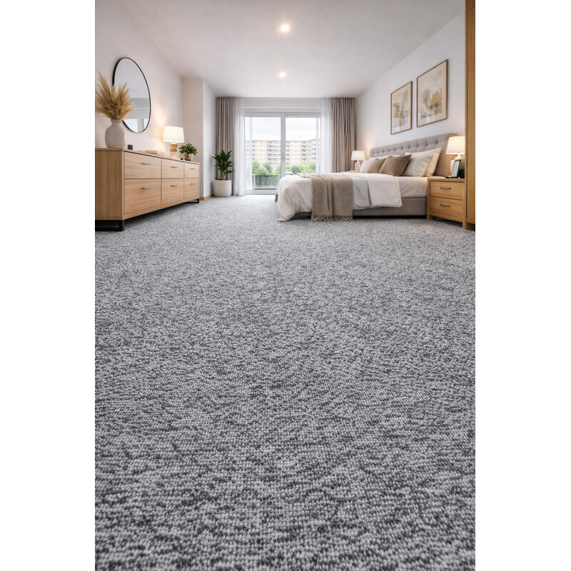 Šedý Batik patrí medzi metrážne koberce s 3D textúrou. Slučkový vlas v dvoch výškach vytvára zaujímavý vzor, ktorý je viac podporený rôznorodou paletou farebných odtieňov šedej. zaisťuje odolnosť a dlhú životnosť, ideálna do stredne zaťažovaných miestností, ako je obývacia izba, spálňa alebo hosťovská izba Filcový podklad zabezpečí neprenikanie chladu z...