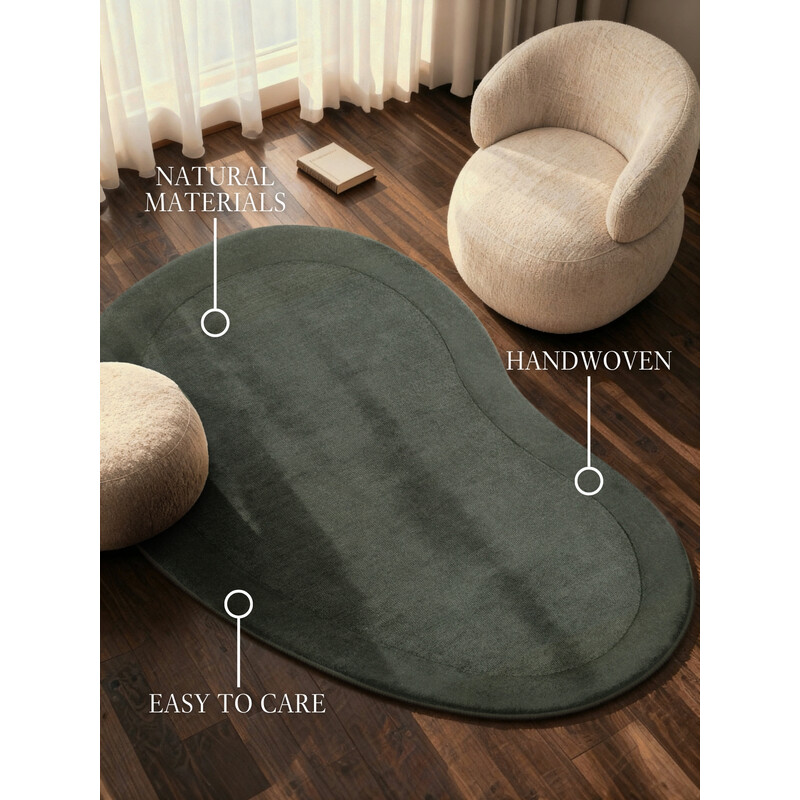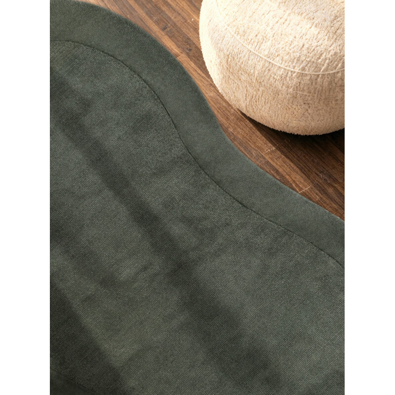 Tmavozelený koberec v atypickom obličkovom tvare pôsobí ako výrazný a hravý prvok, ktorý svojimi plynulými krivkami dodáva priestoru nečakanú jemnosť. Decentne zvýraznený okraj elegantne kopíruje jeho organickú siluetu a dodáva tvaru pôsobivý detail. Zmes vlny a nylonu zaisťuje mäkký došľap aj odolnosť, takže koberec zvláda každodennú prevádzku s...