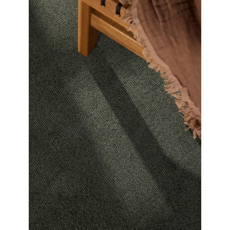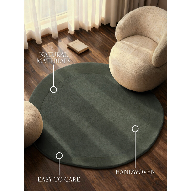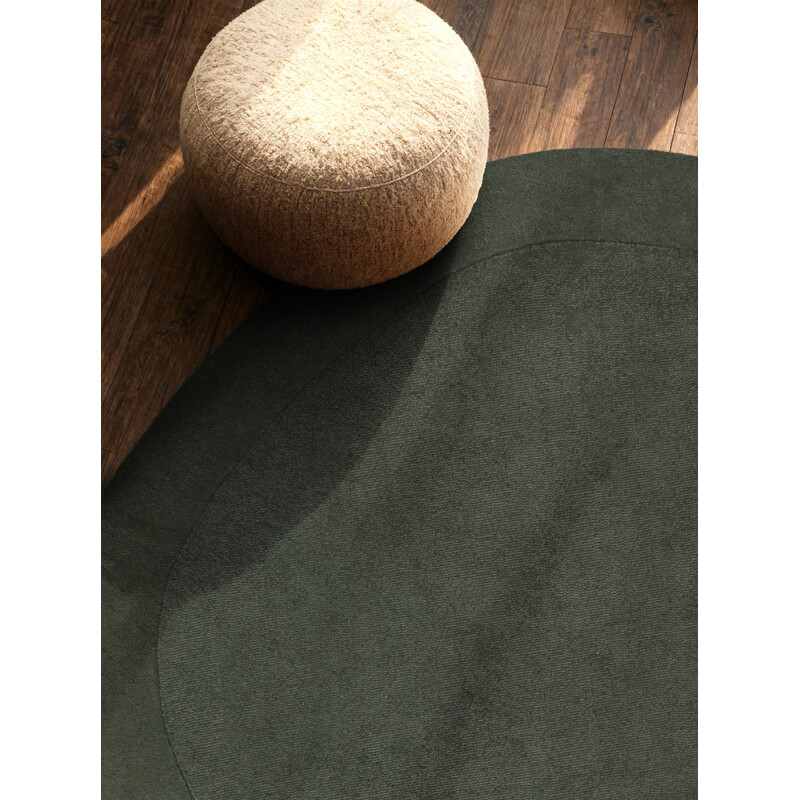 Tmavozelený koberec v nepravidelnom kruhovom tvare vnesie do interiéru štipku hravosti aj upokojujúcu prírodnú atmosféru. Jeho mäkké krivky pôsobia uvoľnene a originálne, zatiaľ čo zvýraznené okraje dodávajú celku jemný dekoratívny akcent. Zmes vlny a nylonu zaisťuje príjemný, mäkko pružiaci povrch, ktorý zároveň odolá každodennému používaniu. Textúra...