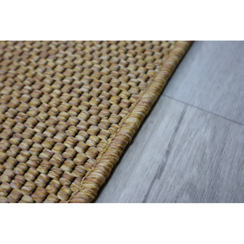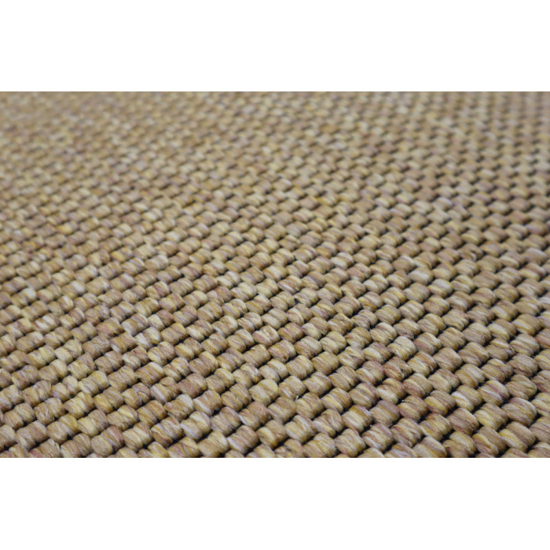 Kusový koberec Brave 103610 z kolekcie Elle sa radí medzi cenovo dostupné a je obšitý zo všetkých strán. Koberec je vhodný aj na vonkajšie použitie. Je vyrobený v prírodnej hnedej farbe a navodzuje pocit ručne tkaného koberca. Patrí do tzv. "Boucle " kobercov - nemá vlas.
