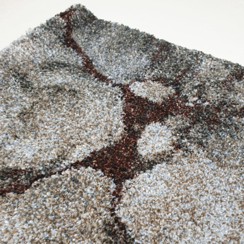 Moderný koberec s geometrickými tvarmi kombinujúcimi béžovú, hnedú a šedú farbu. Vyrába sa z kvalitného polypropylénu heatset frisé , čo je špeciálne upravený materiál zaisťujúci vysokú...