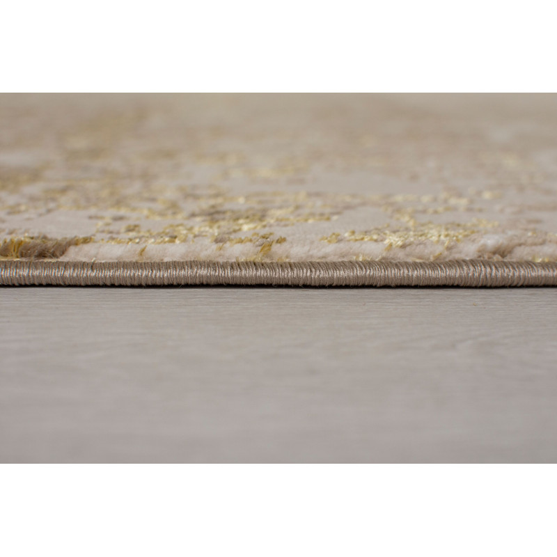 Zlaté listy na krémovo bielom podklade vytvárajú na tomto koberci elegantný a nadčasový design, ktorý pritiahne pozornosť každého návštevníka. Jeho praktické vlastnosti zahŕňajú ľahkú údržbu, vďaka čomu zostáva krásny a svieži aj pri každodennom používaní. Je tiež vhodný na podlahové vykurovanie, čo zaisťuje príjemné teplo a komfort po celý rok.