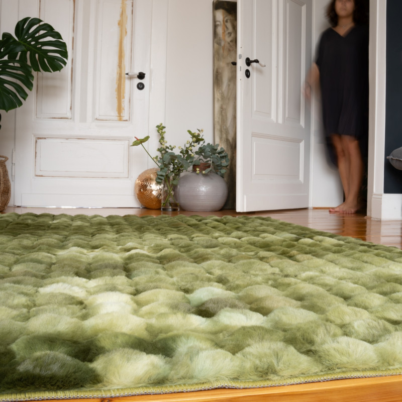 Nech sa tento koberec snaží maskovať sebe viac, nemožno ho prehliadnuť. Kombináciou rôznych odtieňov zelenej farby pripomína škótsku vysočinu a je rovnako hebký ako tamojšia čerstvá trávička. Vyrába sa totiž z mikropolyesteru a má veľmi vysoký vlas. Jeho ďalšou prednosťou je kompatibilita s podlahovým kúrením a obšitie po celom obvode.