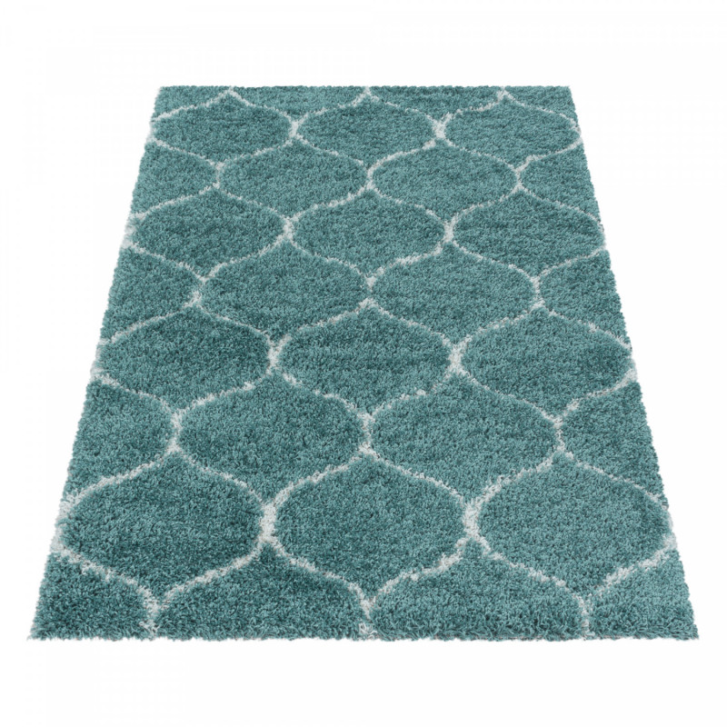Huňatý koberec vyrobený z kvalitného polypropylénu frisé má pútavý motív zložený z tyrkysových, šedých a bielych štvorcov. Geometrické vzory sú stále veľmi moderné, a preto sa jedná o skvelú voľbu do každej domácnosti, predovšetkým do spální alebo obývacích izieb, kde si môžete patrične užiť mäkký a príjemný...