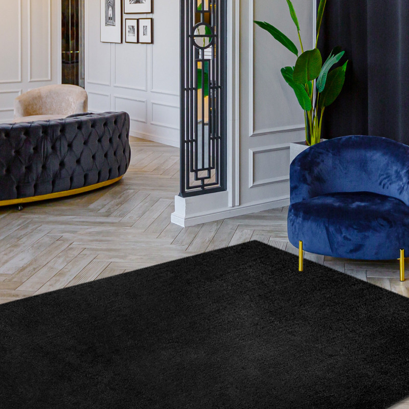 Elegantný vzhľad: Čierna farba prináša do miestnosti eleganciu a sofistikovanosť. Čierne koberce môžu dodať priestoru luxusný a rafinovaný nádych.