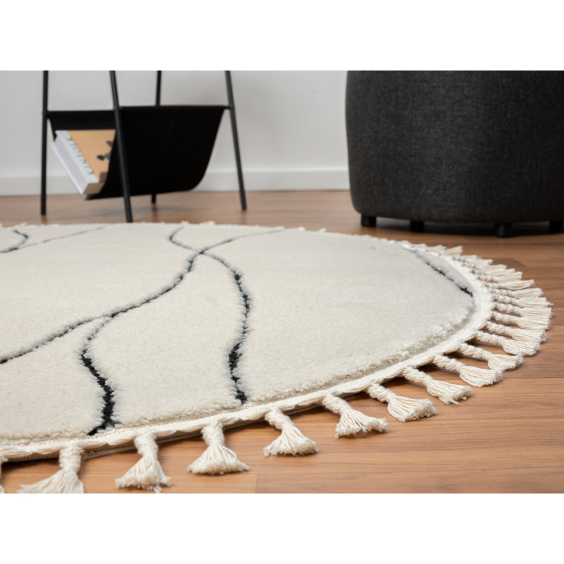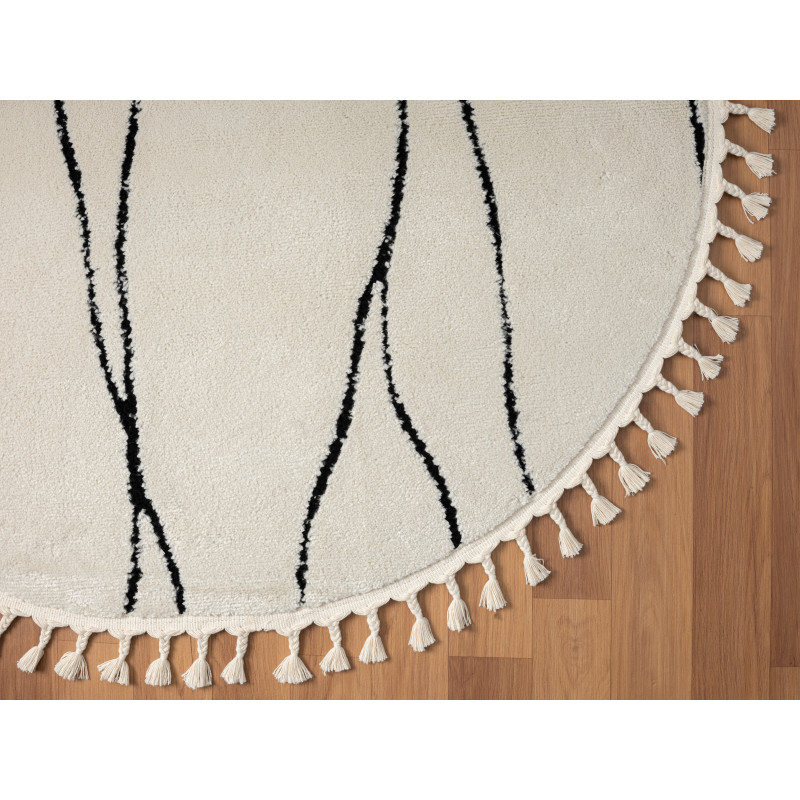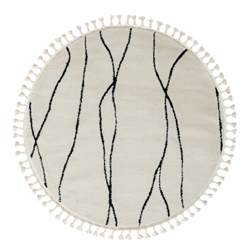 Kusový koberec Moroccan Serenity v čiernobielej kombinácii a okrúhlom tvare je vyrobený zo syntetického (vegan) materiálu. Tento koberec sa hodí do obývačky, spálne aj iných priestorov podľa vašej fantázie. Skvele doladí interiér a vďaka svojmu vzhľadu pridá na útulnosti. Koberec je certifikovaný podľa Oeko-Tex. Je extra mäkký a príjemný na dotyk.