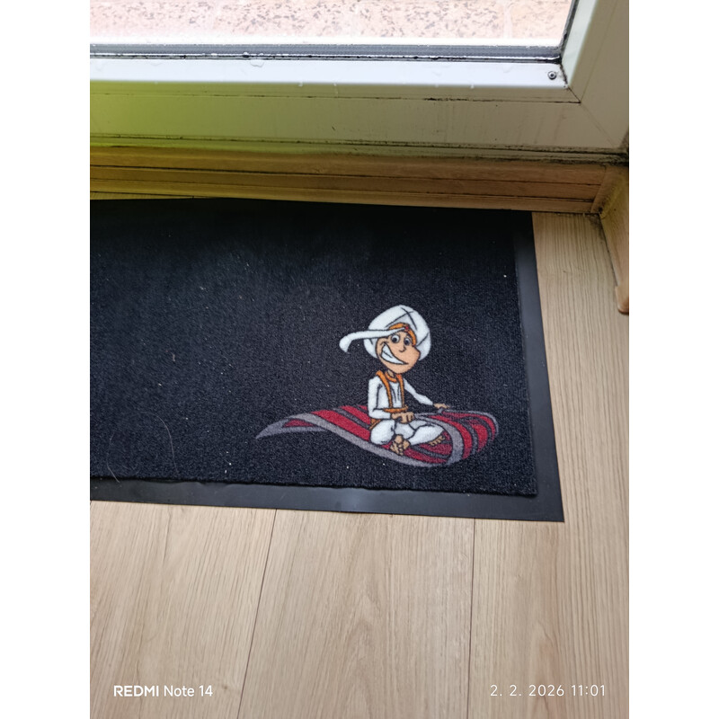 Čierna rohožka s Aladinom na lietajúcom koberci vás privíta s úsmevom hneď pri dverách. Je navrhnutá tak, aby zvládla každodennú prevádzku bez kúziel, ľahko sa čistí, nezľakne sa blata ani piesku a vďaka gumovej spodnej strane zostane presne tam, kde má. Silný gumový okraj po celom obvode chráni rohožku proti pretrhnutiu, takže vydrží aj časté pristávanie...