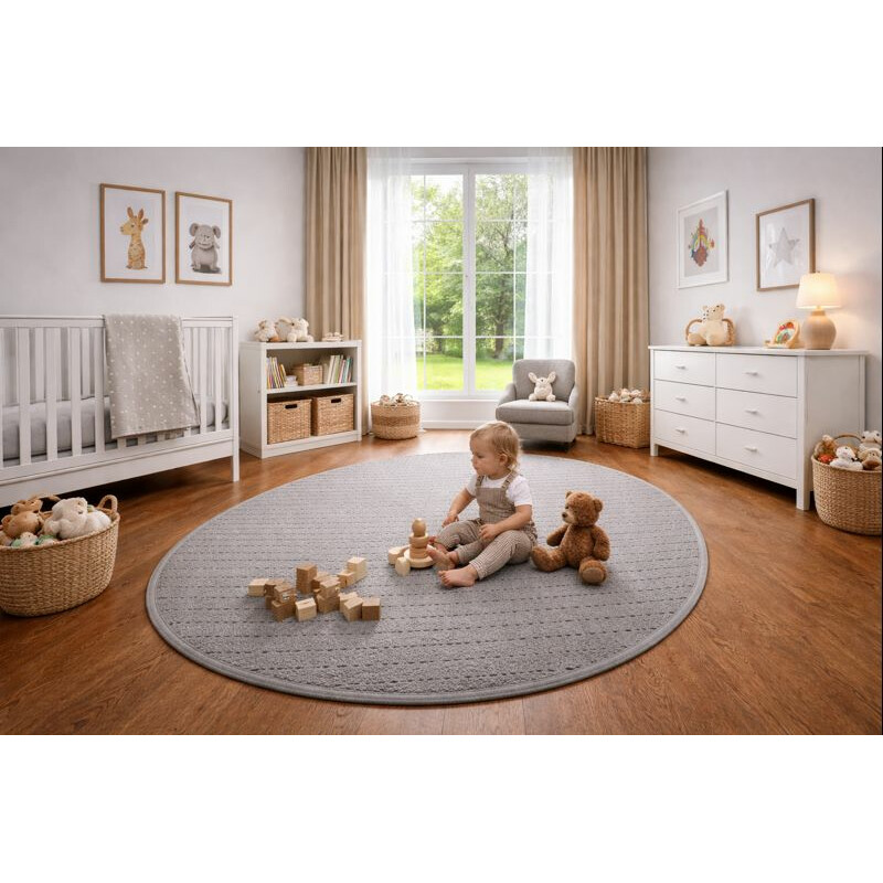 Kruhový koberec Udinese šedý s krátkym slučkovým vlasom. Slučka vytvorí kvalitné a veľmi odolné telo koberca, ktoré znesie vysokú záťaž, dobre sa čistí a udržuje. Obšitie po celom obvode a AB mriežka zaistí stálosť koberca. Jednoduchý vzor a farba umožní všestranné využitie. Tento koberec je na výber v mnohých veľkostiach s možnosťou objednávky na mieru.