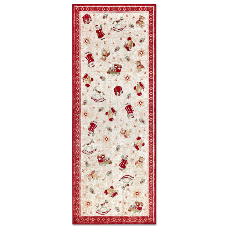 Tento vianočný behúň prináša do vášho domova kúzlo Vianoc v každom detaile! Béžové pozadie zdobia jemné motívy pripomínajúce sviatočné rozprávky a červené lemovanie dodáva slávnostný šmrnc. Je nielen krásny na pohľad, ale aj praktický – protišmyková rubová strana zaistí, že bude lepšie držať na podklade. Vďaka nízkemu strihanému vlasu sa skvele hodí do...