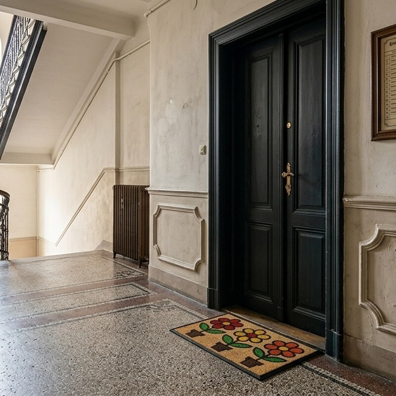 Táto elegantná rohožka s motívom štyroch kvetov maľovaných jedným ťahom prinesie k vašim dverám štýl a umelecký nádych. Minimalistický dizajn kvetov dodáva priestoru jemnosť a vkus. Rohožka je vyrobená zo 100% kokosového vlákna, vďaka čomu je nielen atraktívna, ale aj hrubá a účinná pri odstraňovaní nečistôt z topánok. Jej údržba je jednoduchá – stačí ju...