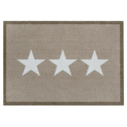 Béžová rohožka s tromi krémovými hviezdičkami pristane interiérovým aj exteriérovým dverám. Je veľmi praktická, ľahká na údržbu a odolná, a to vďaka krátkemu strihanému vlasu z polyamidu. Čerešničkou na torte je to, že je prateľná v práčke.