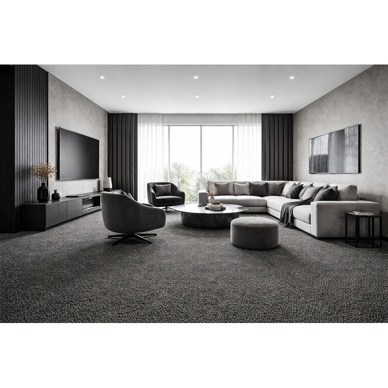 Metrážny koberec Marbeline oslní svojim jedinečným vzorom, ktorý evokuje jemnú štruktúru mramoru. Elegantný tmavošedý odtieň s antracitovým podtónom pritiahne pozornosť a dodá interiéru sofistikovaný vzhľad. Jeho slučkový polypropylénový vlas je nielen odolný, ale aj ľahko udržiavateľný, čo zaisťuje dlhú životnosť a pohodlie pri každodennom používaní....