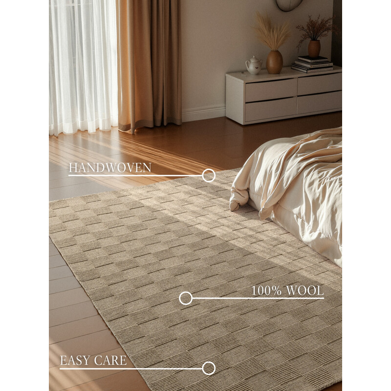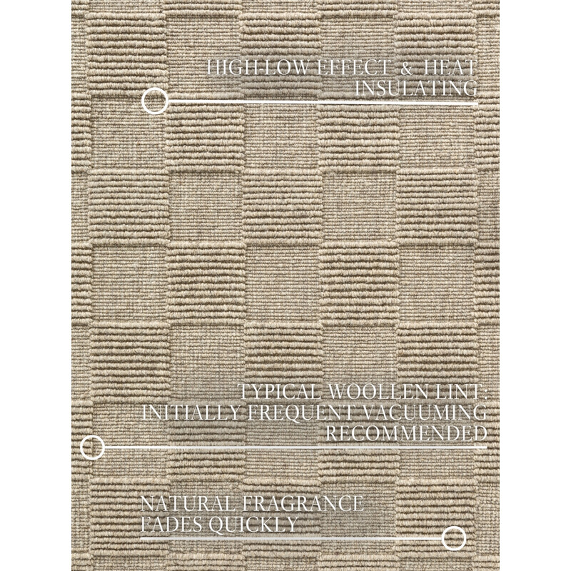 Béžový koberec, ktorý prinesie do vášho domova nádych elegancie a tepla. Je vyrobený z vysoko kvalitnej vlny, ktorá je mäkká na dotyk a zároveň odolná, takže je ideálna na každodenné použitie. Vďaka rubovej strane z bavlny a nižšiemu slučkovému vlasu je ľahko udržiavateľný a skvele izoluje chlad, čo prispieva k pohodlnému a útulnému prostrediu.