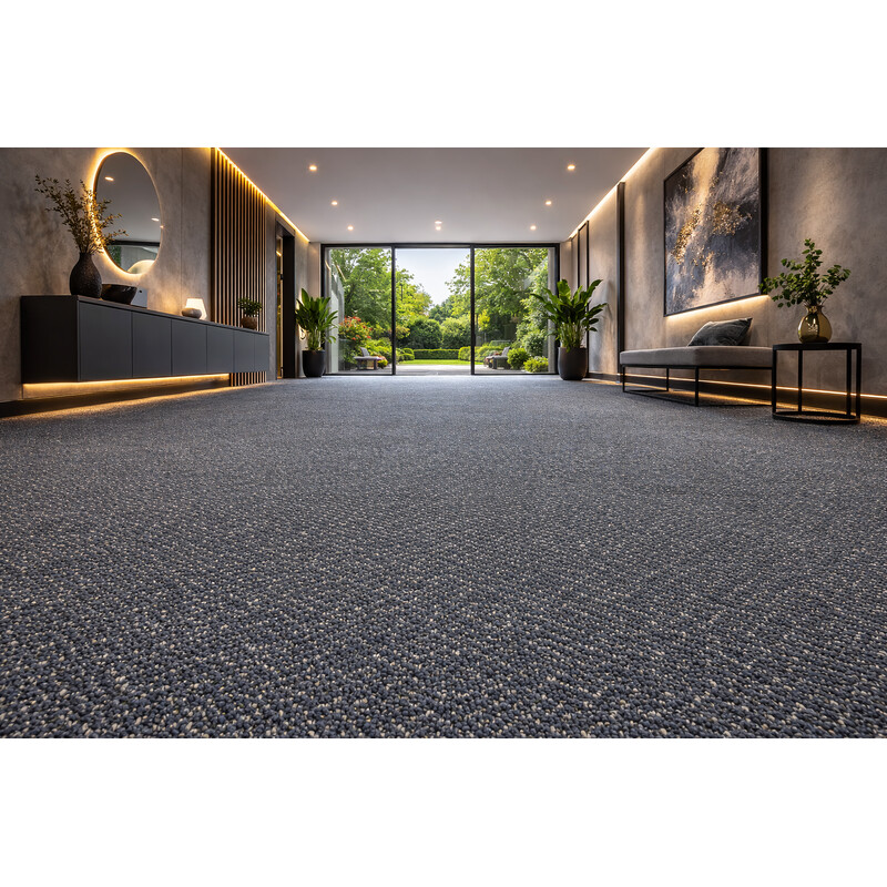 Koberec Fortessa SDE v šedomodrej farbe a jednoduchým vzorom je perfektná voľba ako do verejných, tak i komerčných priestorov. Koberec je nenáročný na údržbu vďaka jeho krátkej výške vlasov.