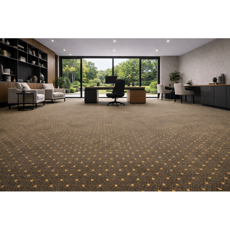 Hnedý koberec s jednoduchým vzorom z radu Fortessa SDE je perfektná voľba do kancelárie či iných verejných priestorov. Tento koberec zaisťuje vysoký stupeň komfortu, ale aj odolnosti. Nemusíte sa báť položiť ho na vyhrievanou podlavu alebo po ňom jazdiť na kolieskové stoličku. Jedná sa o skvelú voľbu!