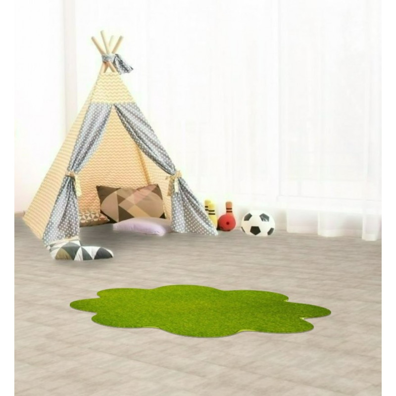 Zelený kruhový koberec, ktorý farebne pripomína trávu a dokonca ho môžete položiť von. Lepšie povedané na terasu alebo balkón. Je totiž odolný voči poveternostným vplyvom a ľahko udržateľný. Má pevné stredne vysoké slučky z polypropylénového vlákna, antistatickú úpravu, a vďaka melírovaniu skryje drobné nečistoty.