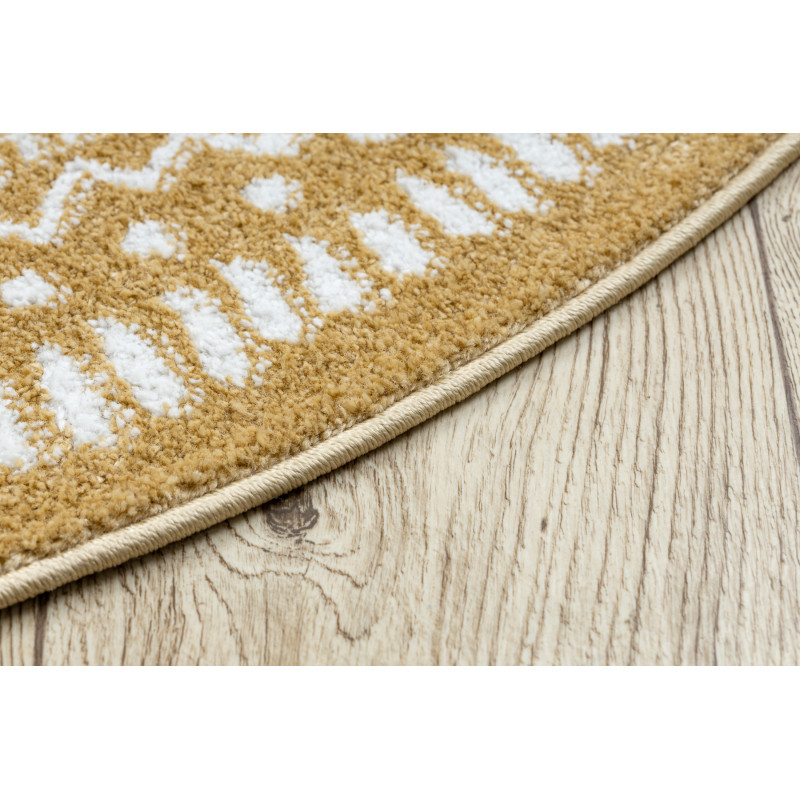 Kusový koberec Napkin gold kruh zaujme jednoduchým vzorom a decentnou farbou. Jeho najväčšou prednosťou je príjemný materiál, ktorý je vyrobený zo 100% polypropylénu s veľmi jemným strihaným vlasom. Koberec je po celom obvode obšitý a je tak chránený proti štiepeniu. Na výrobu nebola použitá žiadna toxická látka a možno ho položiť aj do detskej izby.