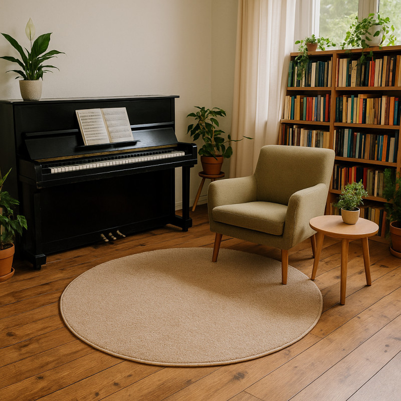 Kruhový koberec Scroll v elegantnej béžovej farbe prináša do interiéru harmóniu a nadčasovosť. Béžová je univerzálny odtieň, ktorý sa skvele hodí do akéhokoľvek priestoru - ľahko ho zladíte s moderným, minimalistickým aj retro štýlom. Tento svetlý tón opticky zväčšuje miestnosť a zároveň ju robí útulnejšie, čo oceníte najmä v obývacej izbe alebo spálni....