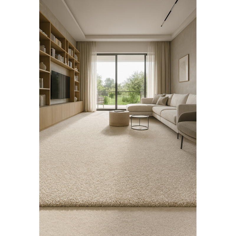 Koberec Velur Ultra v béžovej farbe vnesie do spálne svetlo a pokojnú atmosféru. Jeho univerzálny svetlý odtieň ľahko zapadne do akéhokoľvek interiéru a krásne rozjasní priestor bez toho, aby pôsobil rušivo. Béžová farba v spojení so svetlým nábytkom vytvára príjemné a minimalistické prostredie, ideálne na odpočinok. Nízky vlas zo strihaného polypropylénu...