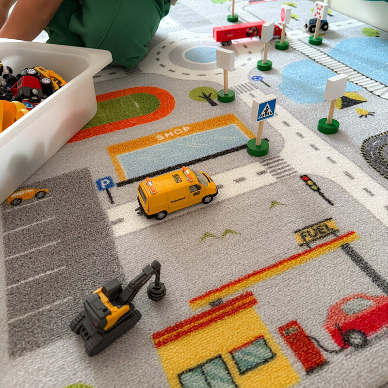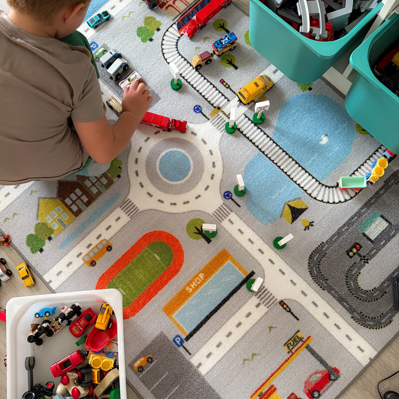Ak váhate nad kúpou kusového koberce do izby pre Vášho malého syna, ste tu správne. S žiadnym iným kobercom si deti toľko nevyhrajú, ako práve s kobercom s motívmi mesta a ciest. Mrakodrapy, križovatky, prechody pre chodcov, to je to čo potrebujete. Kvalitný materiál s vysokou odolnosťou je samozrejmosťou.