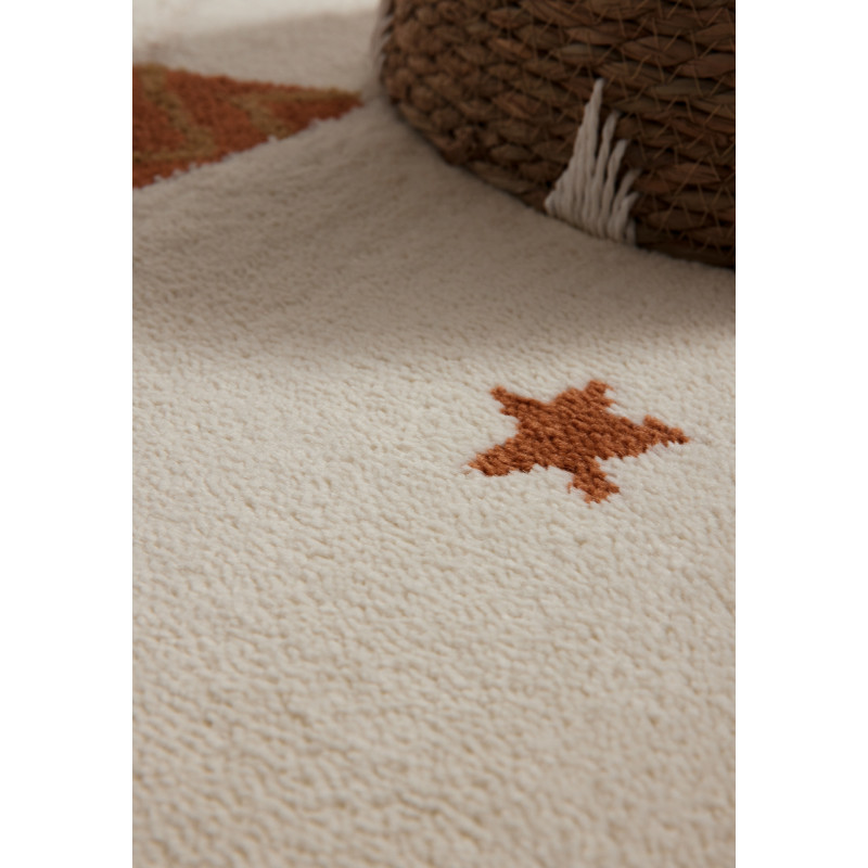 Detský koberec s motívmi ciest, dopravných prostriedkov a zvieratiek na krémovo bielom podklade prinesie veselú atmosféru. Odtiene béžovej, hnedej a oranžovej farby rozjasnia každý interiér. Navyše je vyrobený z odolnej zmesi recyklovanej bavlny a polyesteru, čo zaisťuje jeho trvanlivosť a jednoduchú údržbu.