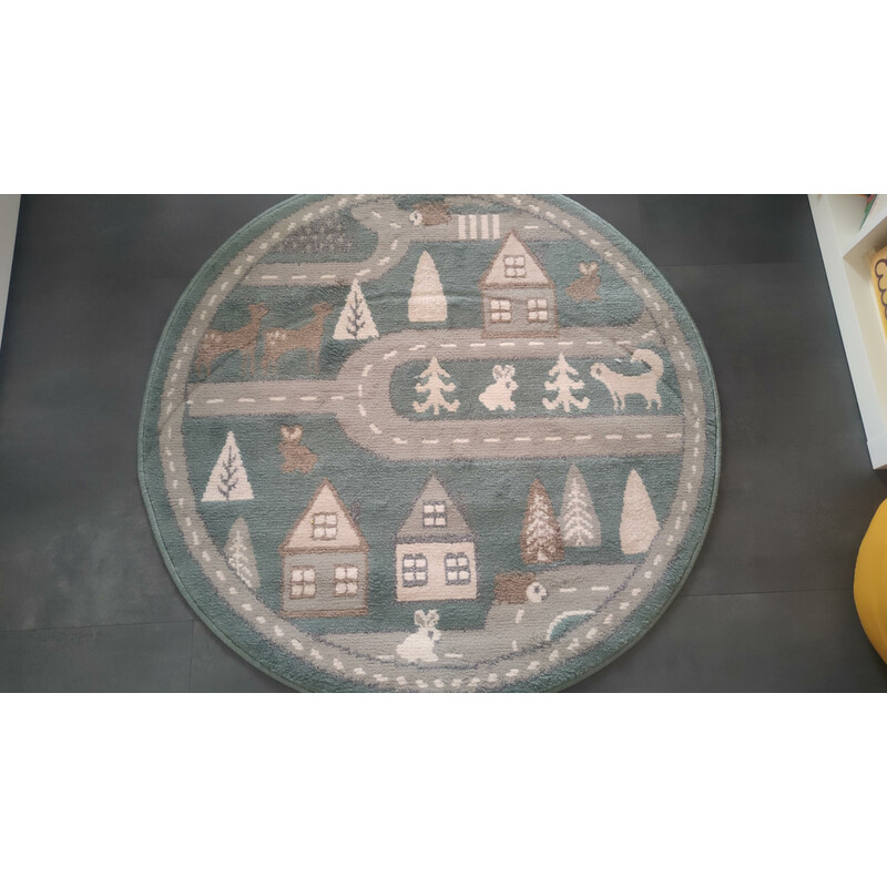 Tyrkysovo modrý kruhový koberec s cestou, ktorá sa vinie cez dedinky, lesy a hory, prináša deťom svet plný dobrodružstva. Zvieratá ako medvede, ježkovia, zajace, daniele a líšky oživujú celý dizajn a podporujú fantáziu. Jasné farby a detailné motívy robia koberec hravým a pútavým doplnkom. Mäkký povrch z polypropylénového vlákna poskytuje pohodlie, zatiaľ...