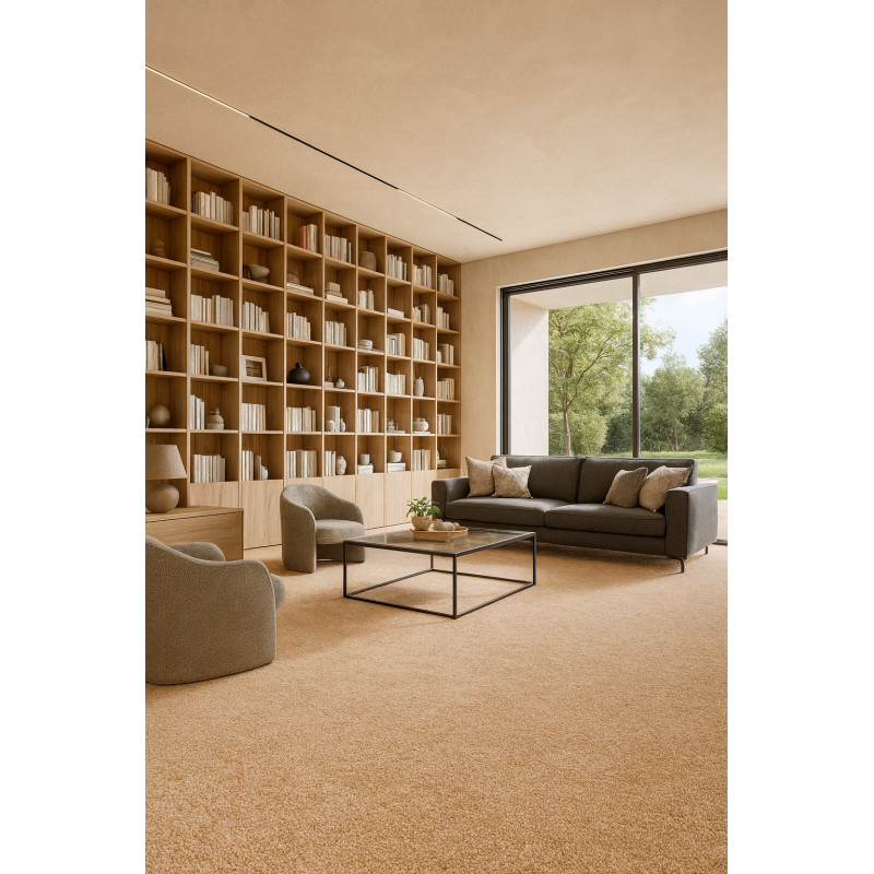 Moderný metrážny koberec v neutrálnej béžovej farbe z kolekcie Dynasty. Koberec sa hodí do stredne namáhaných bytových priestorov a štýlovo ho doplníte farebnými bytovými doplnkami. Koberec môžete položiť na podlahové vykurovanie a má filcový podklad.