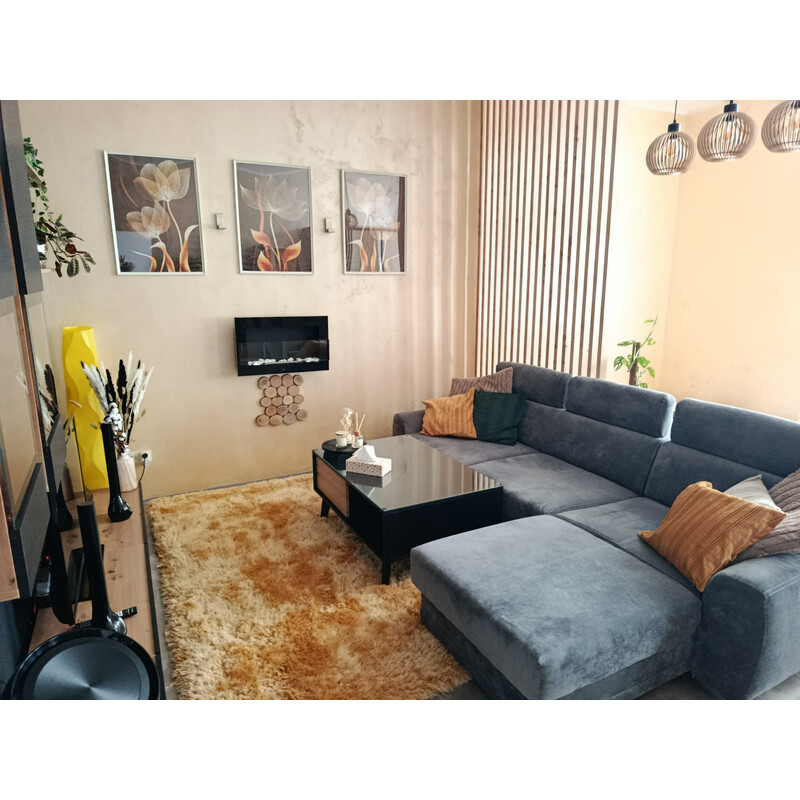 Plyšový koberec v okrovo žltej farbe rozžiari každú miestnosť, aj keď do nej nedopadajú slnečné lúče. Tento veselý kúsok nielen žiari ako slniečko, ale tiež je hrejivý. Má totiž veľmi vysoký vlas typu shaggy, do ktorého zaboríte chodidlá, a už ich nebudete chcieť nikdy vybrať. Dopredu sa ospravedlňujeme, tento koberec je veľmi návykový.