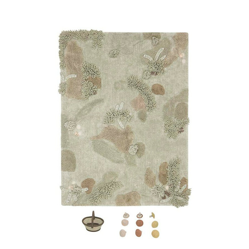 Detský kusový koberec Play Mushroom Forest v zelenej farbe a obdĺžnikovom tvare je vyrobený z prírodnej bavlny, ktorá je priedušná, hebká a ľahko prateľná. Pre pokoj rodičov a radosť detí premení podlahu na mäkké a bezpečné ihrisko v detskej i obývacej izbe. dobre tlmí hluk.
