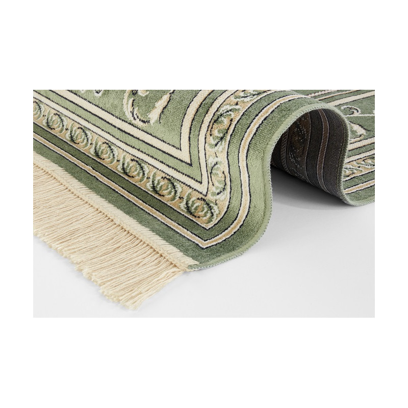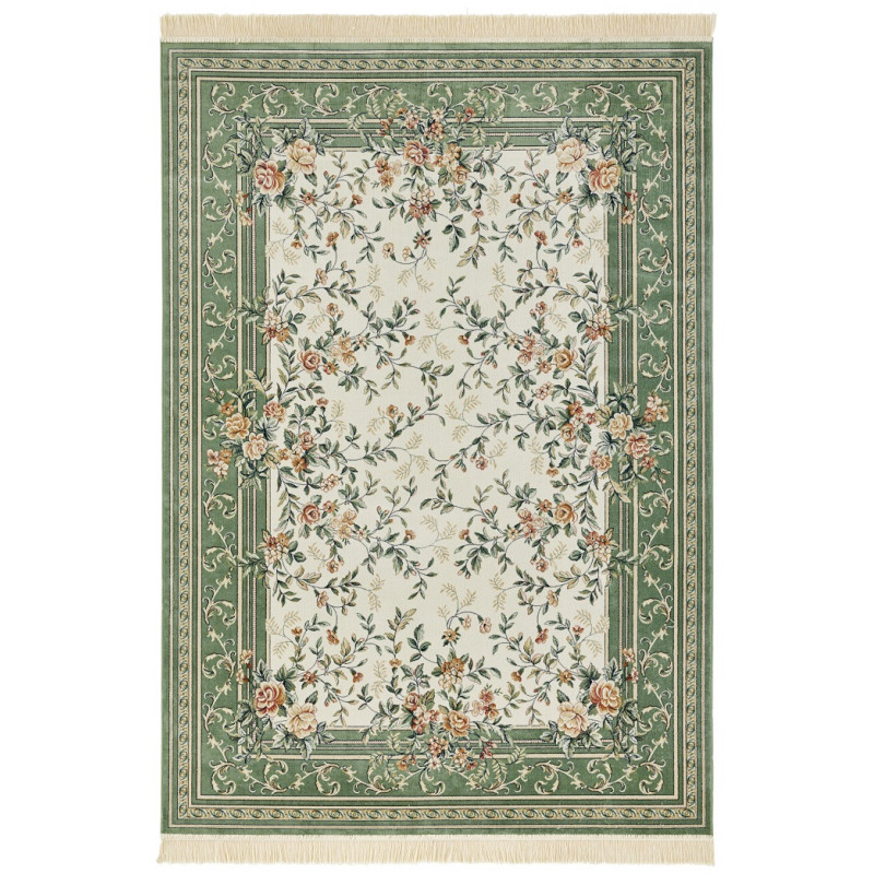 Do zelena sfarbený kusový koberec s kvetinovým vzorom, ktorý je doplnený aj modernejším prvkom. Tento koberec z 60% viskózy a 40% bavlny síce vyniká pekným a podareným dizajnom, ale zabúdať sa nesmie ani na jeho nízku hmotnosť a celkovo veľmi dobrú kvalitu. Koberec je navyše príjemný na dotyk.