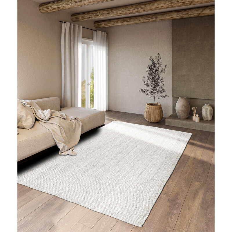 Kusový koberec Eleni v bielej farbe obdĺžnikového tvaru prináša do interiéru prírodnú eleganciu a hrejivú atmosféru. Je ručne vyrobený z prírodných vlákien s vysokým podielom vlny, čo mu dodáva autentický vzhľad aj pevnosť. Je vhodný na použitie s podlahovým vykurovaním, takže je komfortný po celý rok. Skvele sa hodí do spálne, obývacej izby, predsiene...