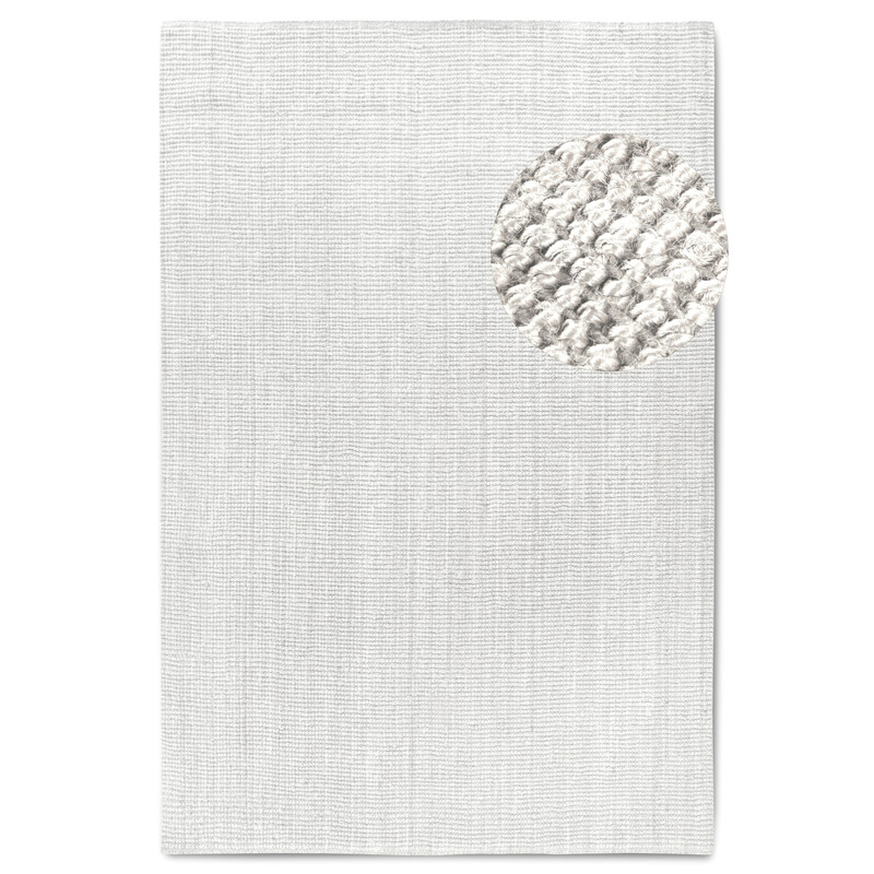 Krémovo biely koberec s 3D efektom, ktorý vzniká použitím rôzne vysokých slučiek. Vyrába sa z vlny, čo je prírodný izolant a koberec sa môže pýšiť hrejivým povrchom a schopnosťou regulovať vlhkosť v interiéri. Jeho ďalšou výhodou je obšitie po celom obvode alebo vyššia odolnosť. Skvelá voľba najmä do spálne či obývačky.