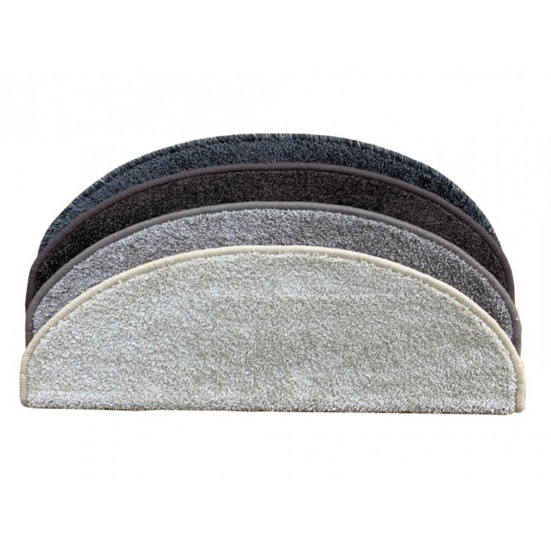 Šedé polkruhové nášľapy vyrobené z veľmi jemného polypropylénu. Dĺžka vlasu dosahuje 10mm, a preto sú tieto nášľapy extrémne príjemné na dotyk a na došľap. Farba nie je jednoliata, ale je melírovaná. Vďaka tomu sú tieto nášľapy veľmi praktické, pretože na nich nie je vidieť každá škvrnka. Jednoduché čistenie je samozrejmosťou.