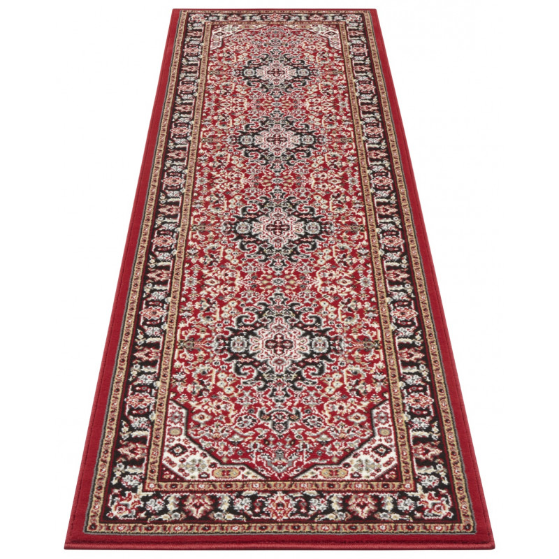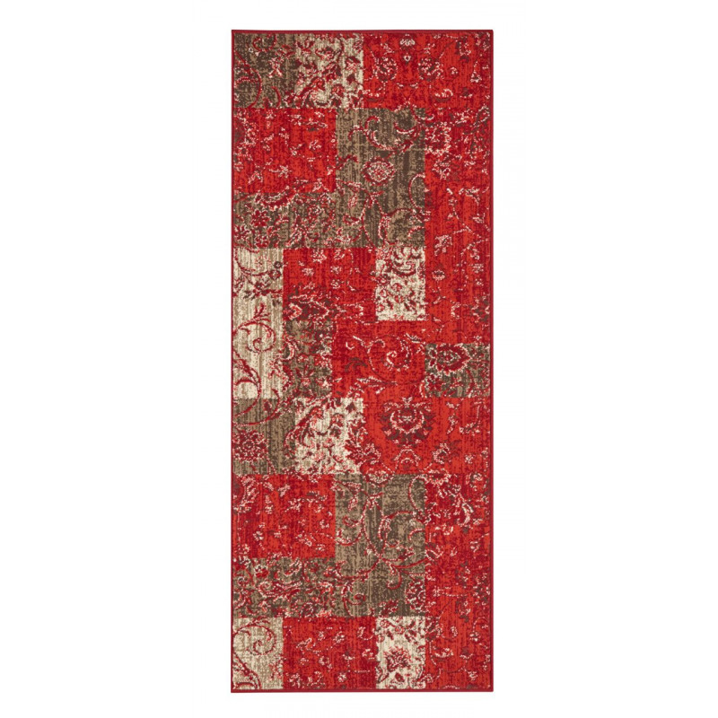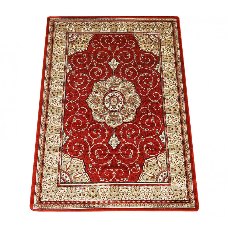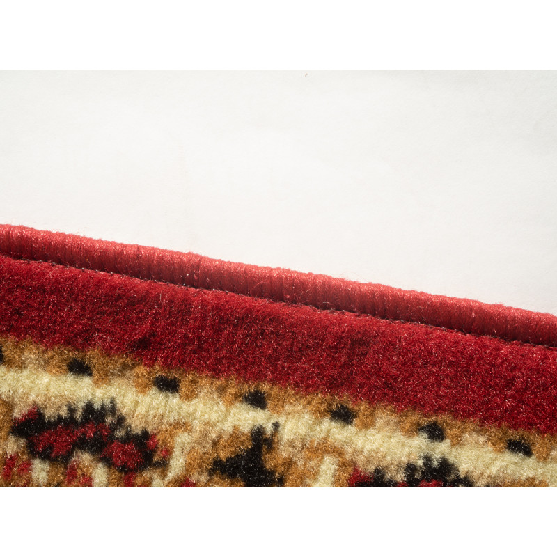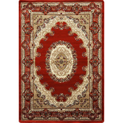 Výrazne červený koberec s orientálnym motívom rozžiari každú obývaciu izbu alebo spálňu. Je ozdobený rôznofarebnými kvetinovými vzormi. Jeho výhodou je mäkký a komfortný povrch, čo zaisťuje stredne vysoký strihaný vlas z polypropylénu. Ten je navyše odolný a ľahký na údržbu.