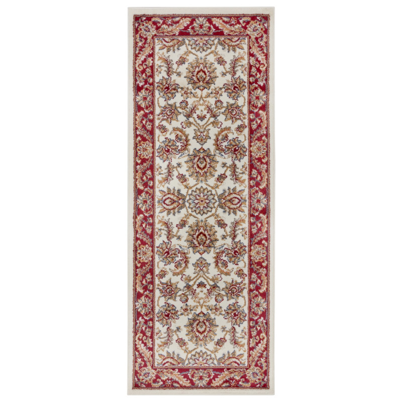 Orientálny koberec kombinujúci červenú a krémovo bielu farbu je nestarnúca klasika. Tento podarený kúsok s kvetinovými vzormi sa vyrába z polypropylénového vlákna, ktoré je mäkké a odolné. Vďaka stredne vysokému strihanému vlasu je tiež príjemný na došľap, čo Vaše bosé chodidlá najlepšie ocenia pri posteli alebo pohovke.