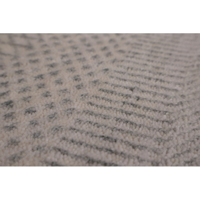 Krémovo biely koberec s 3D efektom, ktorý vzniká použitím rôzne vysokých slučiek. Vyrába sa z vlny, čo je prírodný izolant a koberec sa môže pýšiť hrejivým povrchom a schopnosťou regulovať vlhkosť v interiéri. Jeho ďalšou výhodou je obšitie po celom obvode alebo vyššia odolnosť. Skvelá voľba najmä do spálne či obývačky.