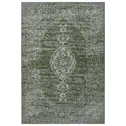 Viacfarebný orientálny koberec vo vintage štýle má ozdobný stredový medailón. Po obvode má krémovo biele lemovanie, vďaka ktorému sa nestrapkajú okraje. Koberec sa vyrába z polypropylénu a má stredne vysoký strihaný vlas. Preto je mäkký a príjemný na dotyk.