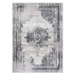 Šedý koberec s medailónom uprostred je veľmi praktický, či už pre svoju neutrálnu farbu alebo multifunkčné využitie. Možno ho totiž použiť v domácnosti aj exteriéri. Je vyrobený z pevného polypropylénu a má veľmi krátky vlas. Vďaka týmto parametrom je odolný a ľahko udržateľný. Ďalšou výhodou je kompatibilita s podlahovým kúrením.