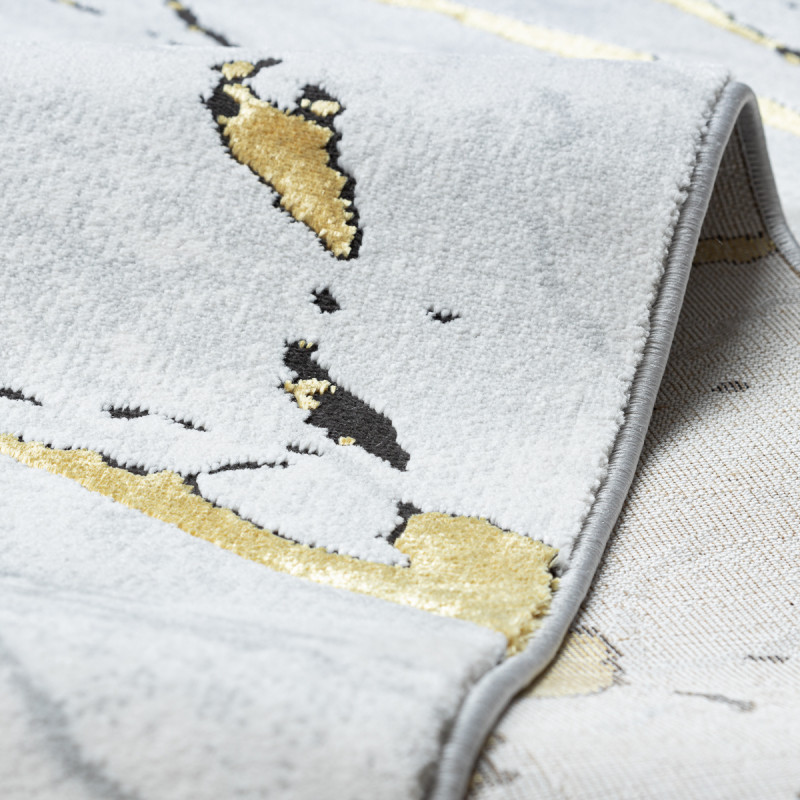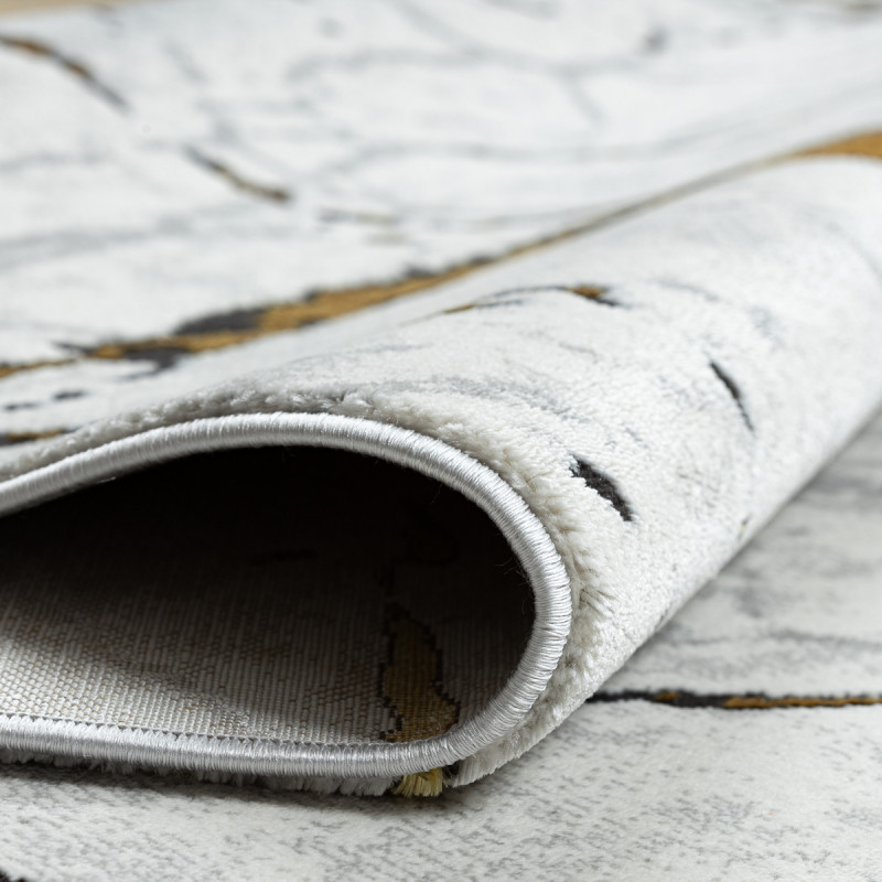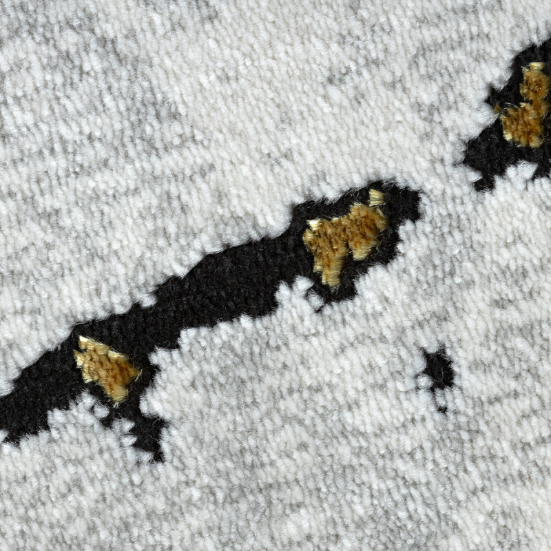 Kusový koberec Allure 1967 black/gold je odvážny a moderný dizajnový kúsok, ktorý pritiahne pozornosť na prvý pohľad. Na čiernom podklade sa rozbiehajú zlaté línie pripomínajúce praskliny v kameni alebo žilkovanie nerastov, doplnené šedými akcentmi. Vyrobený z polypropylénu a polyesteru, čo zaisťuje jeho odolnosť, jednoduchú údržbu a zároveň hebký povrch....